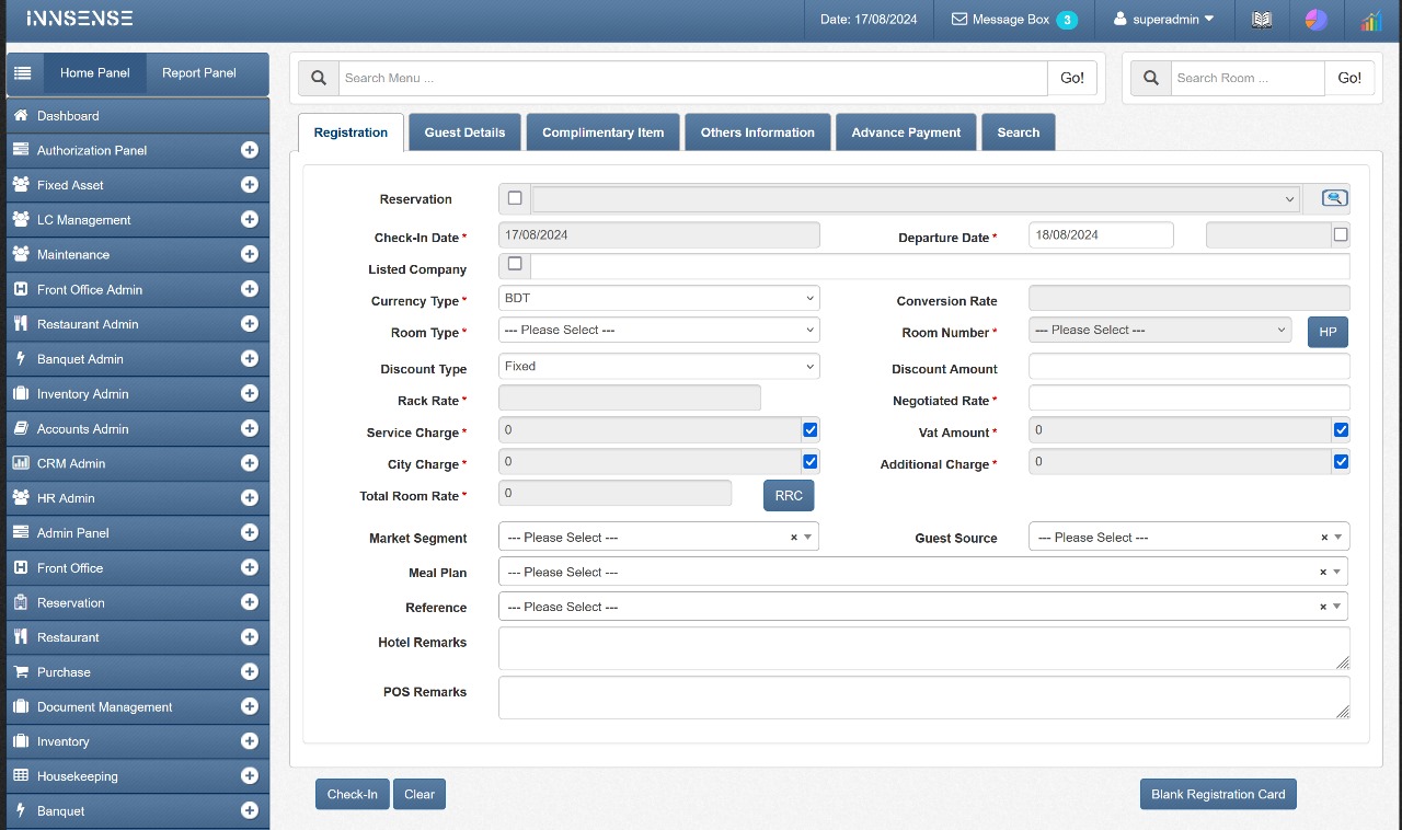 Innsense is a comprehensive Hotel Management ERP system designed to streamline and optimize the operations of hospitality establishments. It integrates various modules such as Front Office, Housekeeping, Inventory, Point of Sale, and more, providing a unified platform for managing reservations, guest services, and back-office functions. With features like real-time dashboards, automated workflows, and detailed reporting, Innsense enhances operational efficiency, improves guest satisfaction, and supports data-driven decision-making. This robust system is tailored to meet the diverse needs of hotels, resorts, and other hospitality businesses, ensuring seamless management and exceptional service delivery.