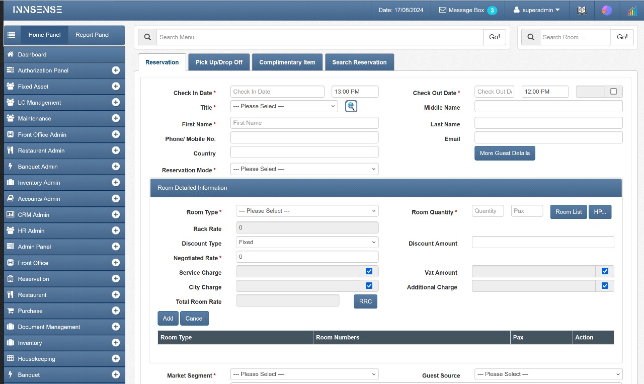 Innsense is a comprehensive Hotel Management ERP system designed to streamline and optimize the operations of hospitality establishments. It integrates various modules such as Front Office, Housekeeping, Inventory, Point of Sale, and more, providing a unified platform for managing reservations, guest services, and back-office functions. With features like real-time dashboards, automated workflows, and detailed reporting, Innsense enhances operational efficiency, improves guest satisfaction, and supports data-driven decision-making. This robust system is tailored to meet the diverse needs of hotels, resorts, and other hospitality businesses, ensuring seamless management and exceptional service delivery.